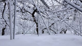 さくらんぼ狩り 雪と脚立と、悴む足先と。